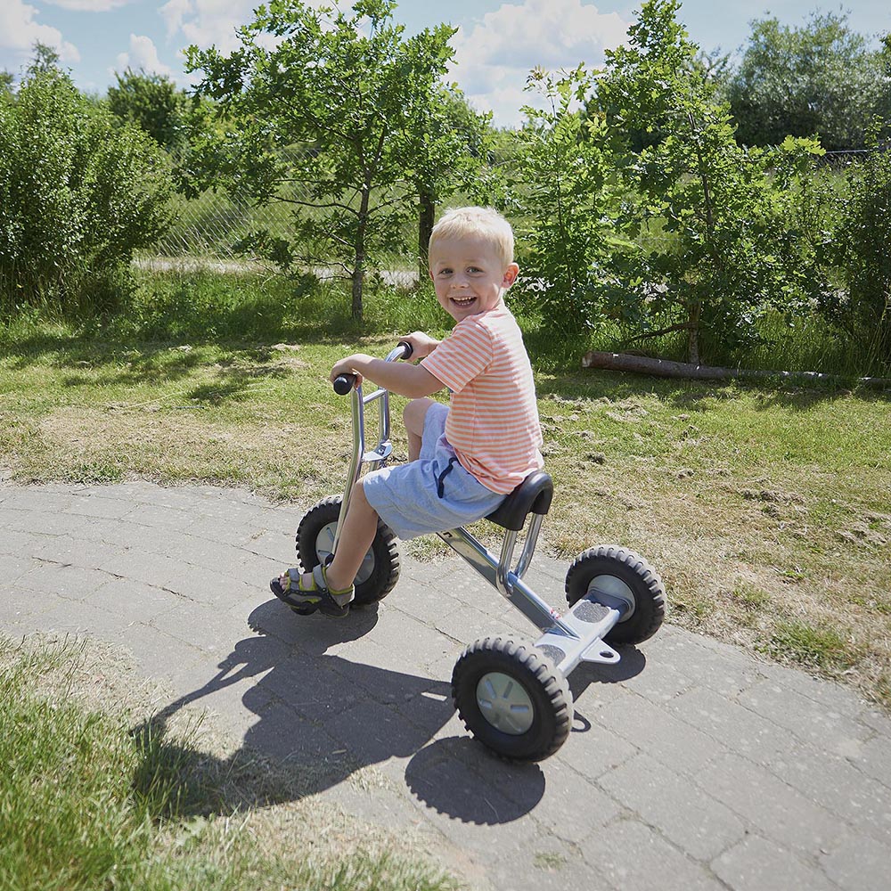 Our popular 3 wheeler can now be taken off road. Children will love to pretend they are in a rally or desert race. The broad and rough tyres make it perfect for uneven surfaces providing that bit of extra balance for the rider.