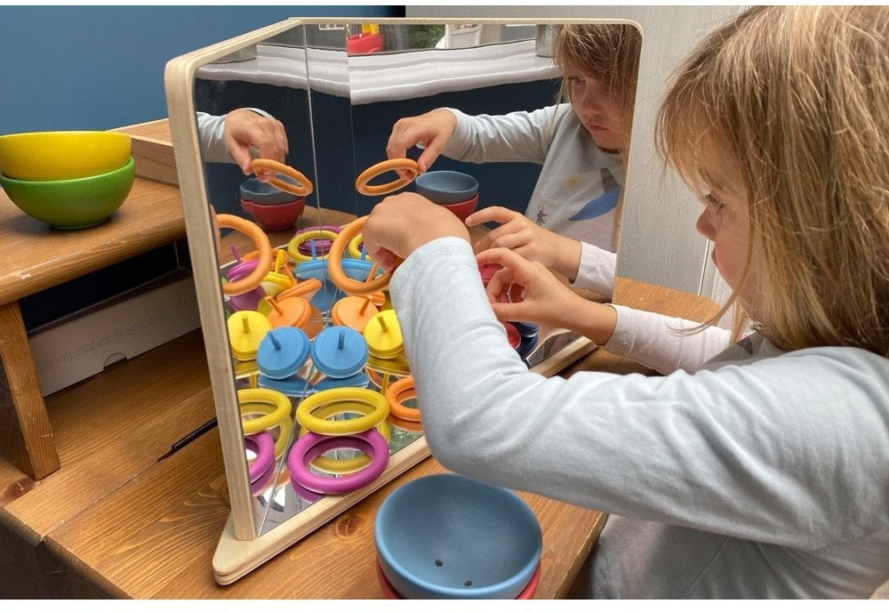 This 4-way mirror supports developmental learning in observation, personal awareness, and spatial understanding, making it a versatile tool for classrooms or at home.